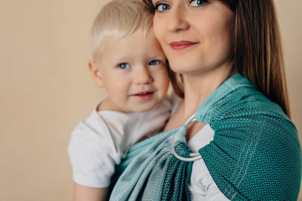 Ring Sling - šátek s kroužky je jednoduchý a velmi rychlý způsob, jak nosit miminko na jednom boku. Nemusíte nic vázat, jednoduše ring sling položíte na jedno rameno, do látky na vašem boku usadíte miminko a už jen jednoduše a snadno dotáhnete látku v kroužcích. Ring sling využijí jen výjimeční nosiči, ale poslouží jako jednoduché poponášecí řešení zkušeným.