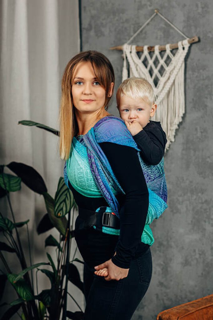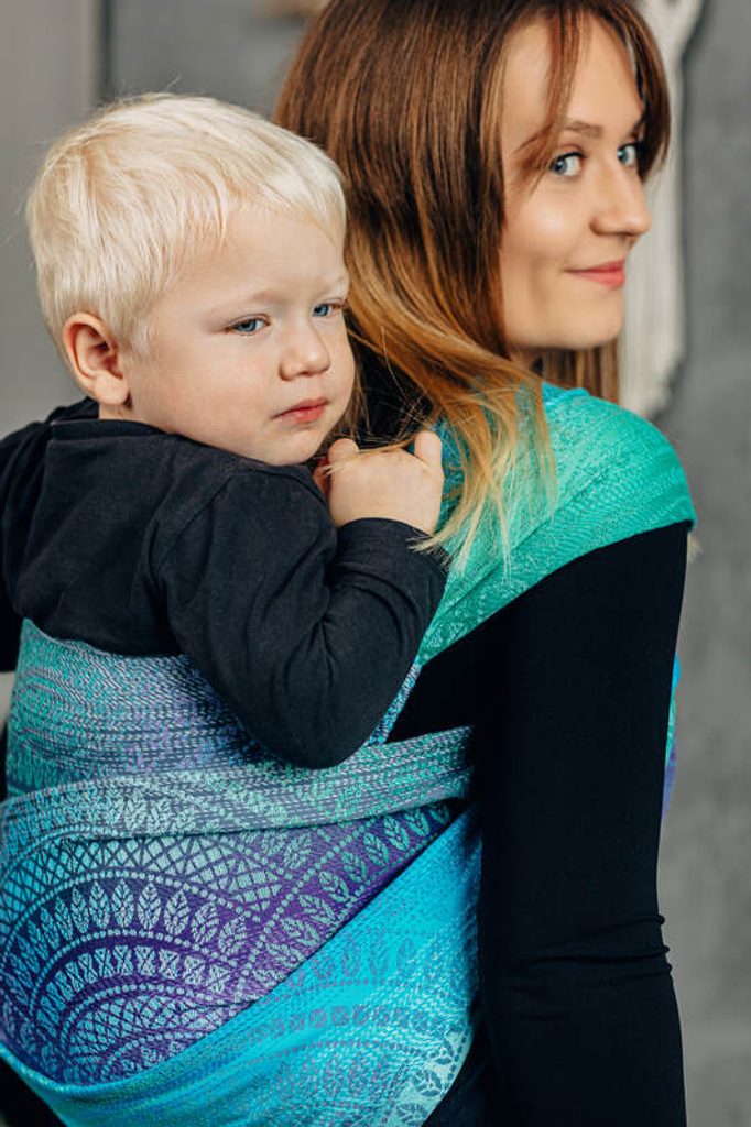 LennyHybrid nosítko Standard - PEACOCK'S TAIL - BLACK OPAL (merino, hedvábí, kašmír)