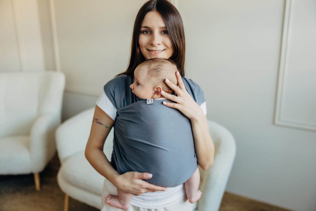 Příjemný a přizpůsobivý elastický šátek pro nejmenší miminka ze 100% bavlny pro všechny rodiče nosící začátečníky.