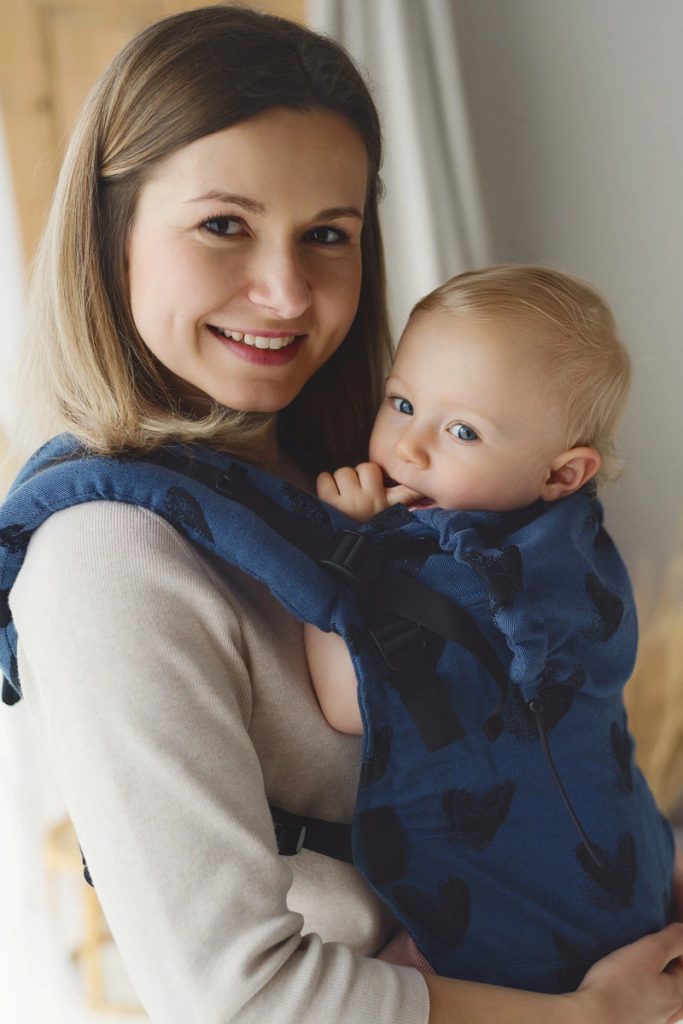 Stačí zapnout bederní pás, usadit dítě, přetáhnout panel, nasadit ramenní popruhy, utáhnout – a hotovo! Máte volné ruce a dítě je bezpečně a pohodlně přitulené k vám.
