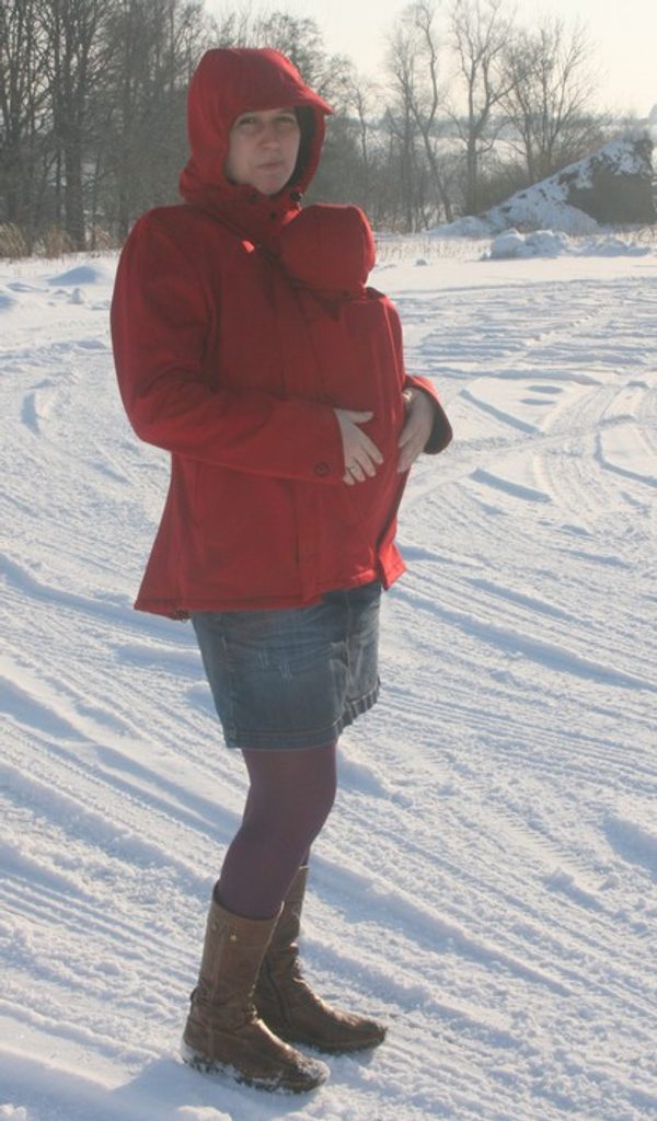 Celoroční softshellová bunda švýcarského výrobce určená pro používání při nošení miminek na břiše a na zádech. Navíc s také s těhotenskou vsadkou pro nošení v těhotenství.