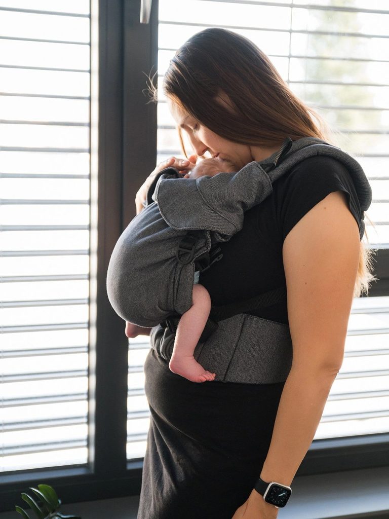 Miminka se začínají nosit nejprve na břiše, jakmile poporostou, můžete je přesunout na záda a vyrážet na delší výlety s nošením na vašich zádech.