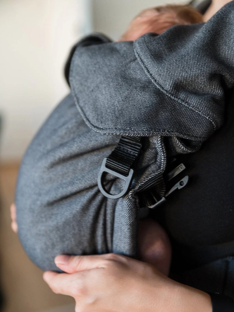 K nosítku je napevno přišitá opěrka hlavičky, kterou můžete jednoduše zajistit spícím dětem hlavičku před klimbnutím. K ramenním popruhům se připíná jednoduchým zavléknutím oček na koncích gumiček za plastové háčky.