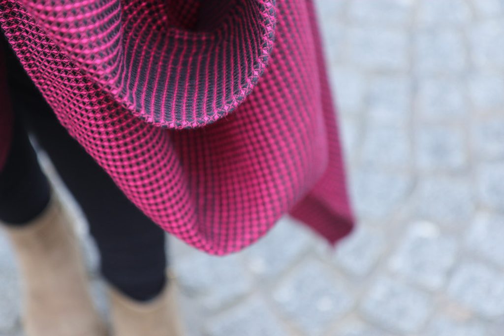 A díky proti sobě založeným lemům na dlouhých stranách šátku si můžete libovolně vybrat, která strana pro vás bude lícová, je jedno, jestli budete nosit lícem nebo rubem směrem do světa :)