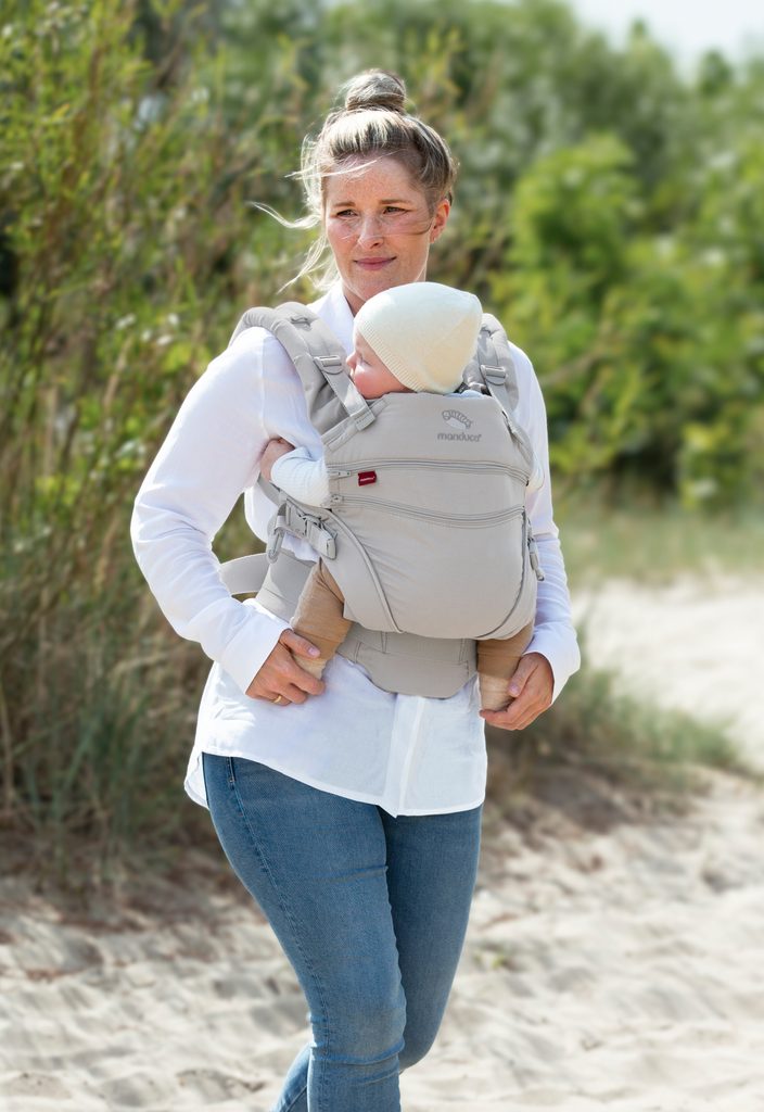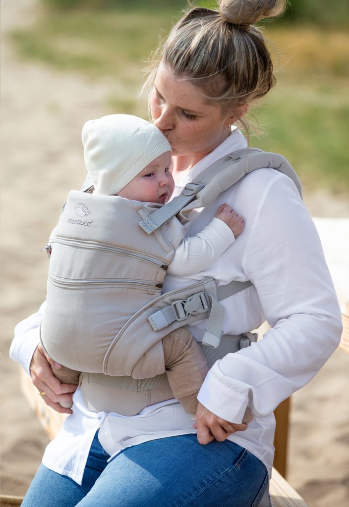 Nosítko Manduca je ergonomické nosítko v pravém slova smyslu - díky dostatečně široké opěrce pod zadečkem je miminko vždy v šetrné poloze - podepřena jsou celá stehýnka, kolínka jsou výš jak zadeček, záda jsou mírně zakulacena a zapřena do látky zádové operky.